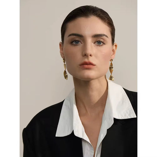 High-Fashion Textured Golden Flow Twist Statement Earrings