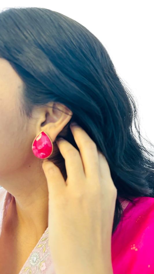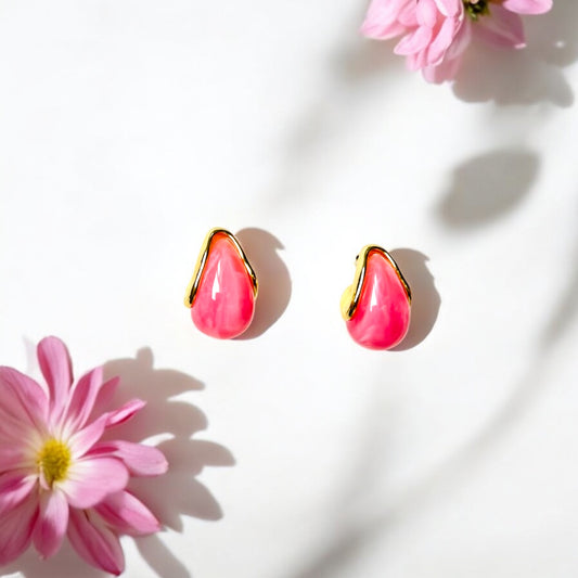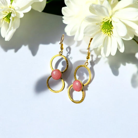 Rose Radiance Brass Studs - Blushing Elegance: Natural Stone in Blooming Rose