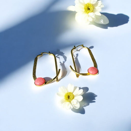 Modern Gold Hoops with Pastel Pink Accents - Anti-tarnish brass