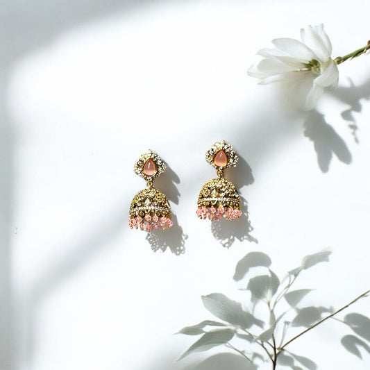 Victoria Collection: Delicate Pink Jadau Jhumka Earrings