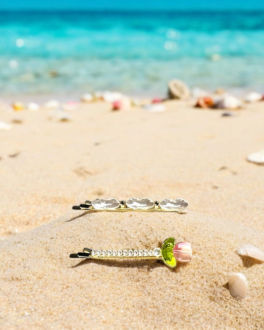 Elegant Pearl & Rose Hair Clip Set (Gold)
