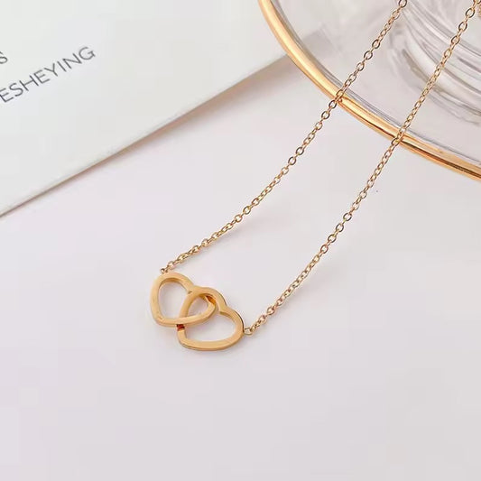 Double Heart Gold Necklace – Anti Tarnish, Waterproof, Everyday Wear