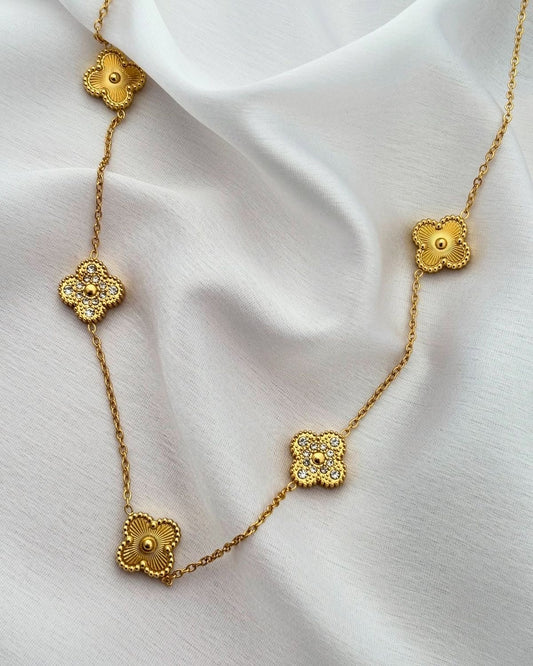 Golden Clover Luxe Necklace with AD Stone Studs – Anti-Tarnish & Waterproof