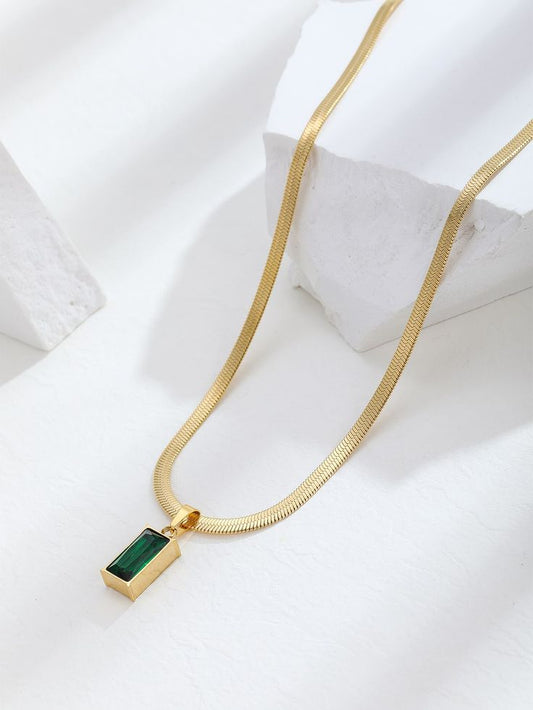 Emerald Elegance Gold-Tone Herringbone Necklace – Anti-Tarnish Pendant Chain for Indian Women
