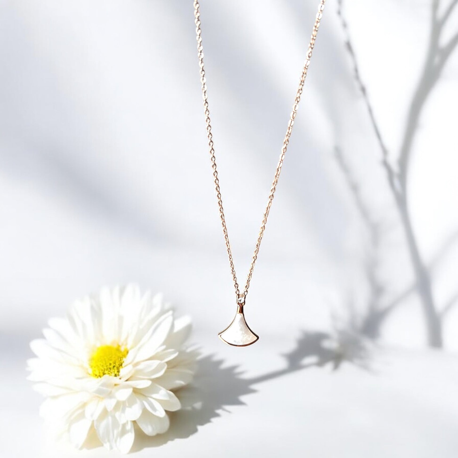 Delicate Rose Gold Fan Pendant Necklace (Anti-Tarnish)