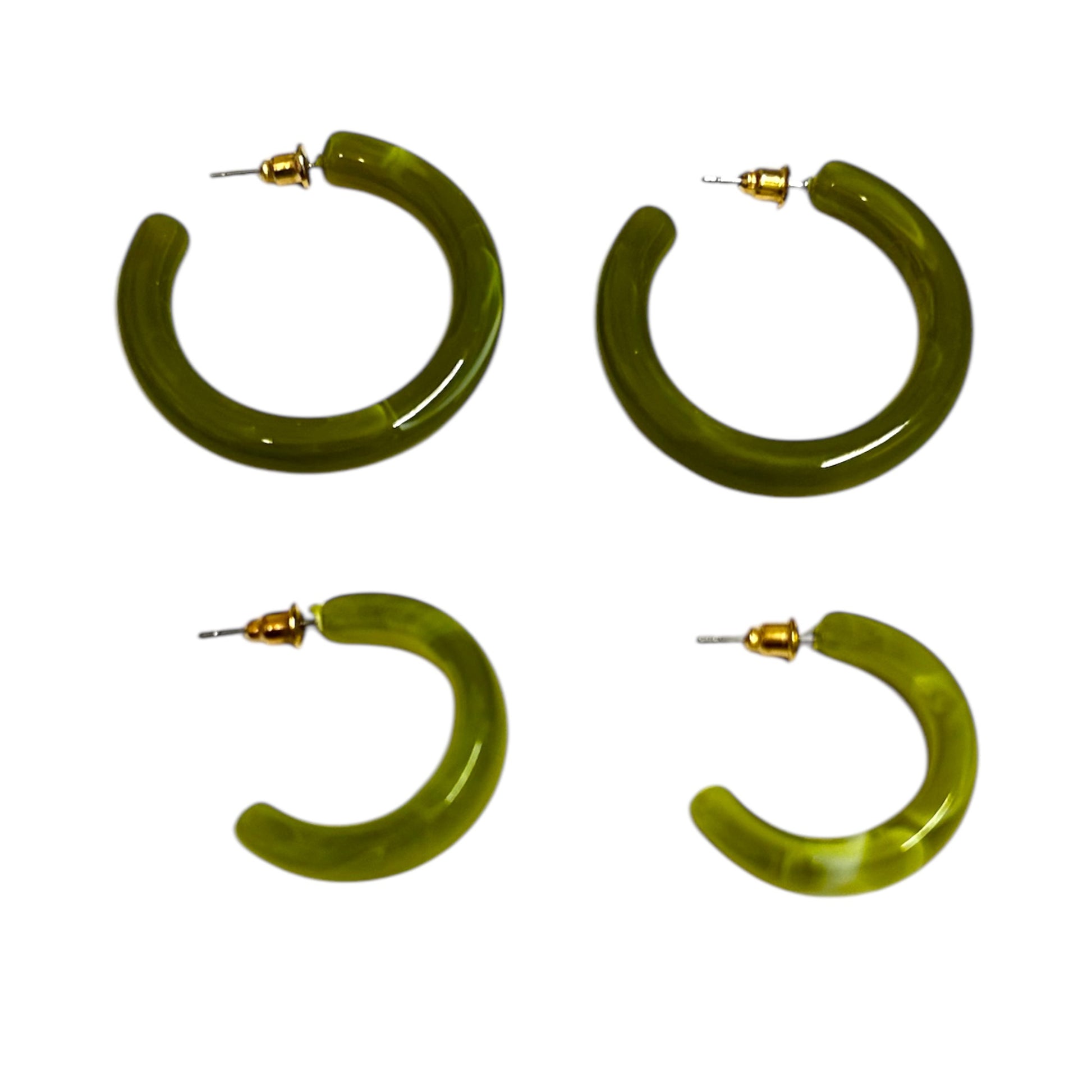 Elevate your accessory collection with these stunning Marbled Green Hoop Earrings. This set of two glossy resin hoops is designed to give you effortless style with a bold pop of color. The unique green marble pattern adds a touch of sophistication, while the glossy finish ensures these earrings shine with every wear.