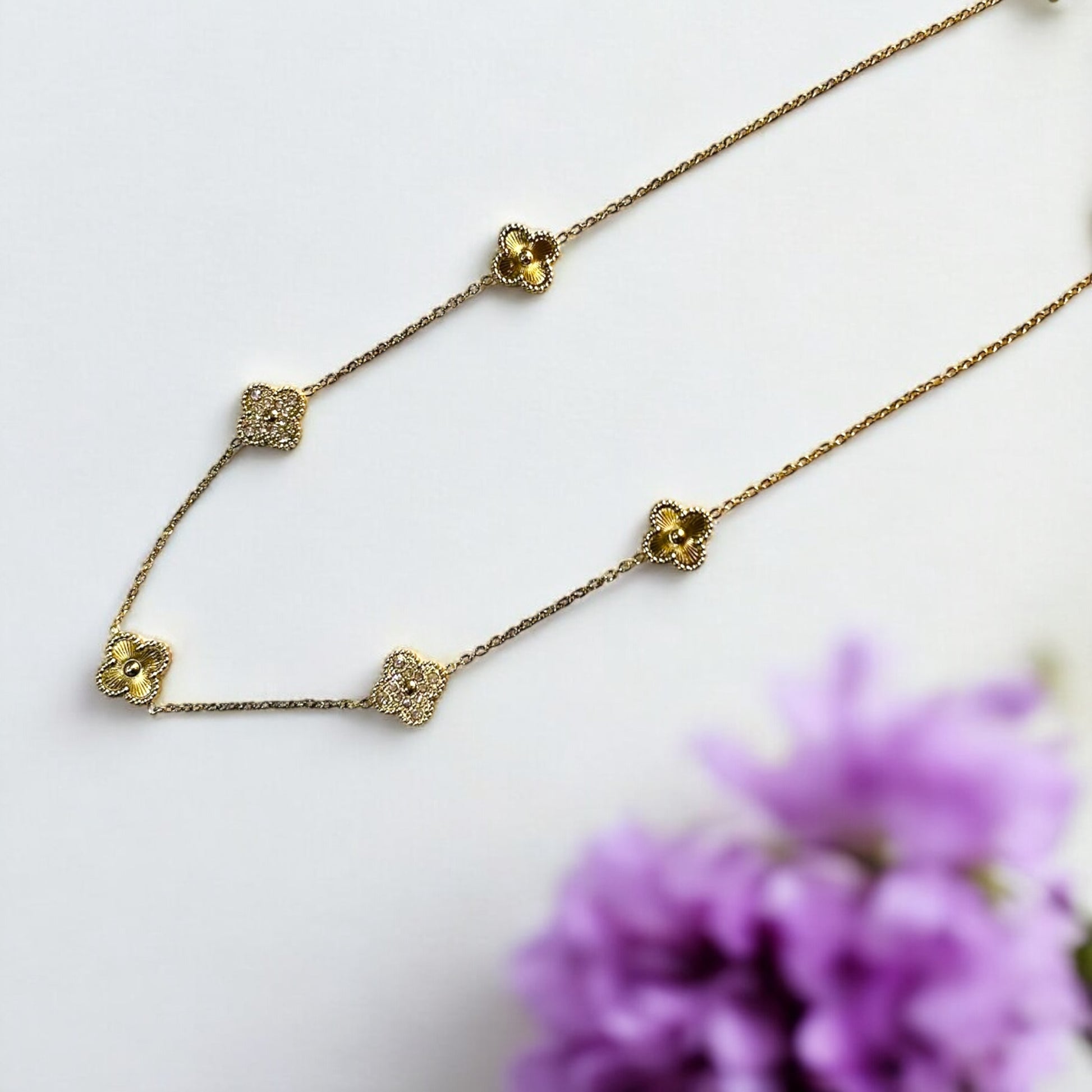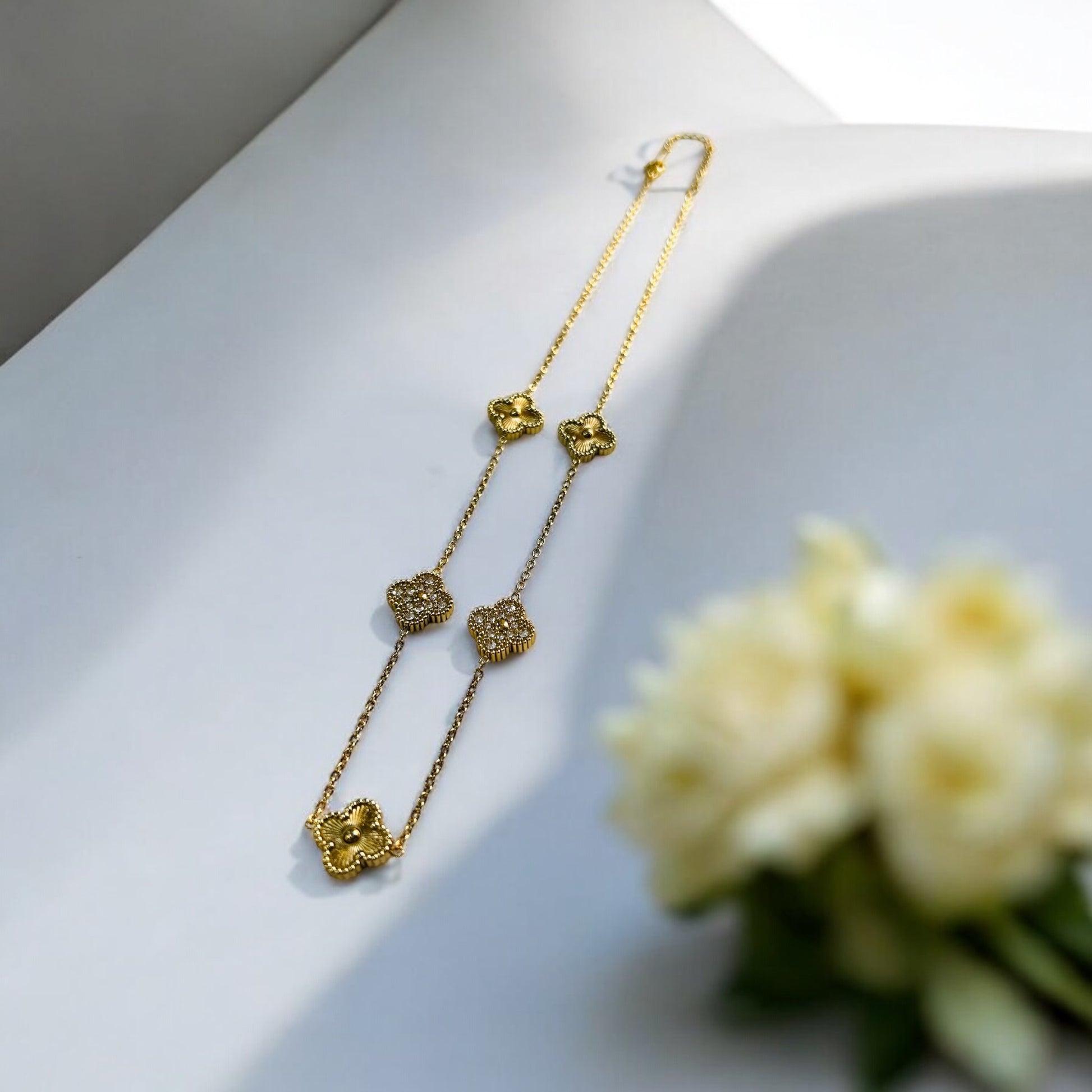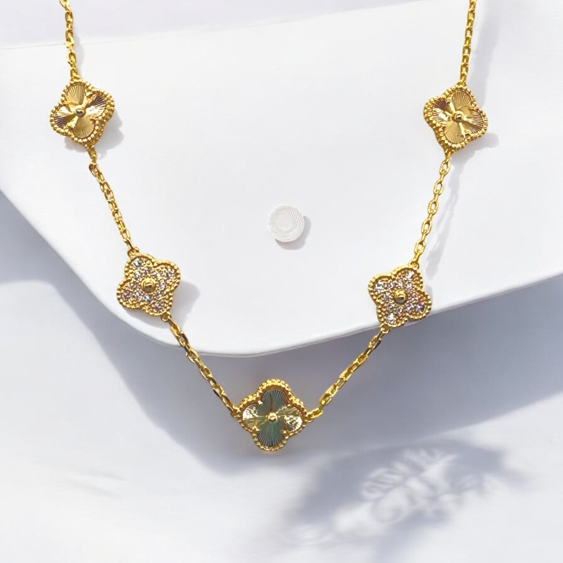 Golden Clover Luxe Necklace with AD Stone Studs – Anti-Tarnish & Waterproof