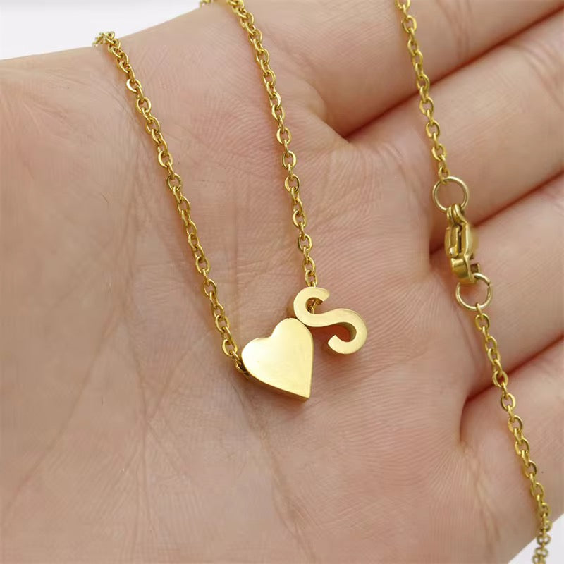 Golden Initial Love: Anti-Tarnish Stainless Steel Letter & Heart Necklace - Personalized Charm