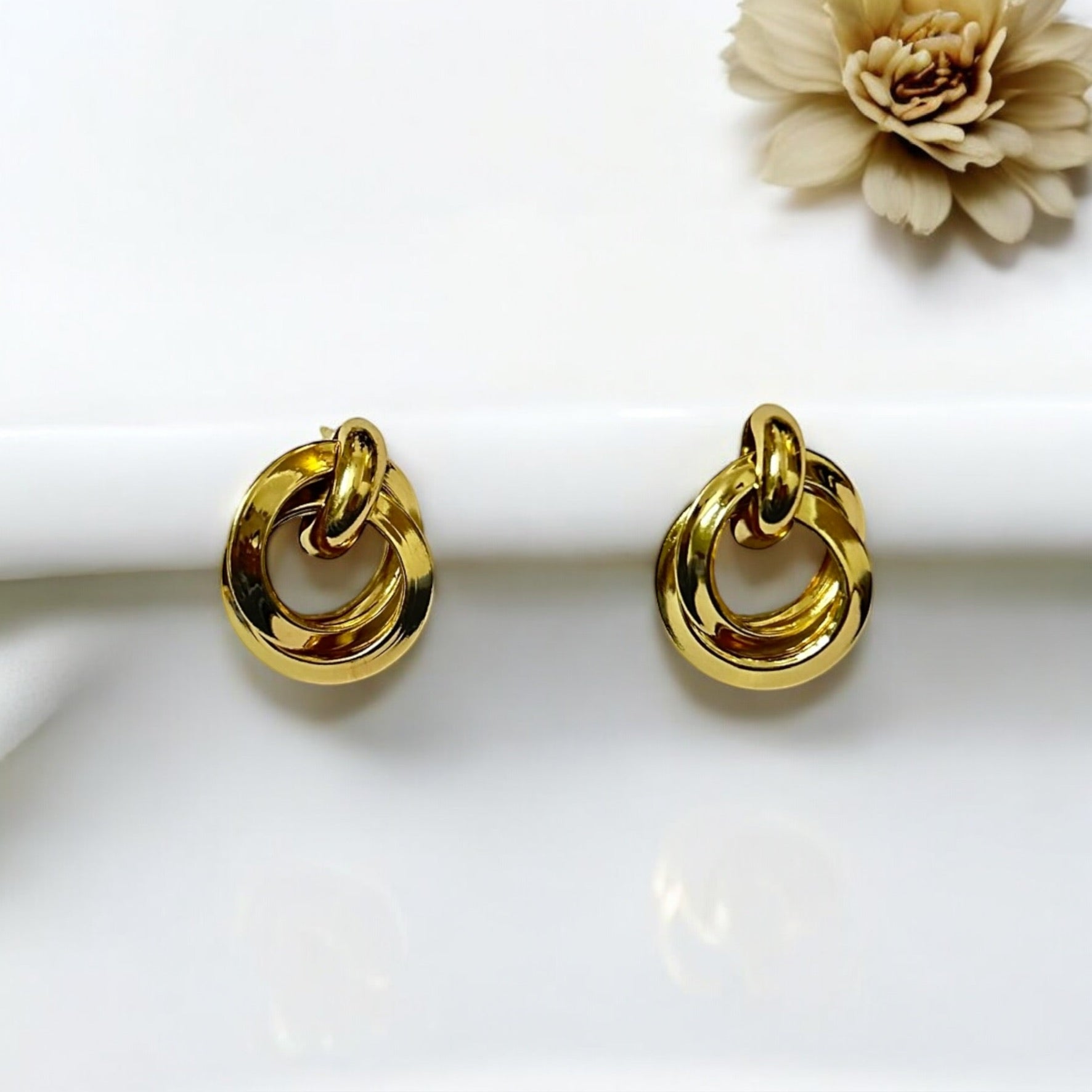 Golden Intertwined Circle Earrings—a perfect blend of sturdiness and elegance that makes them a timeless addition to any jewellery collection.