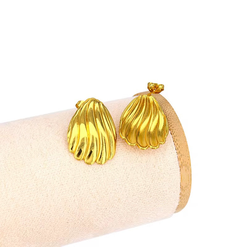 Ride the Style Wave: Golden Ripple Anti-Tarnish Earrings for Effortless Glam.