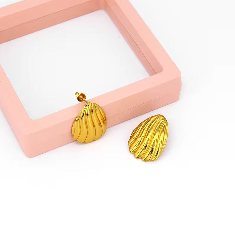 Crafted from high-grade stainless steel and enhanced with advanced anti-tarnish technology, these earrings maintain their radiant golden shine, ensuring you look polished and put-together all day, every day. Say goodbye to dullness and hello to enduring brilliance! The distinct ripple texture creates a captivating visual effect, making these earrings a standout piece in your fashion jewellery collection.