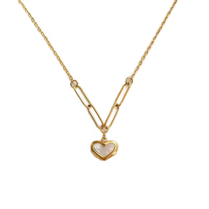 Add effortless charm to your everyday look with the Luna Heart Anti-Tarnish Necklace – a stunning blend of minimalism and romance. Crafted with a sleek paperclip chain and a dainty mother-of-pearl heart pendant, this non-tarnish gold plated necklace is water-resistant, hypoallergenic, and built to shine wear after wear.