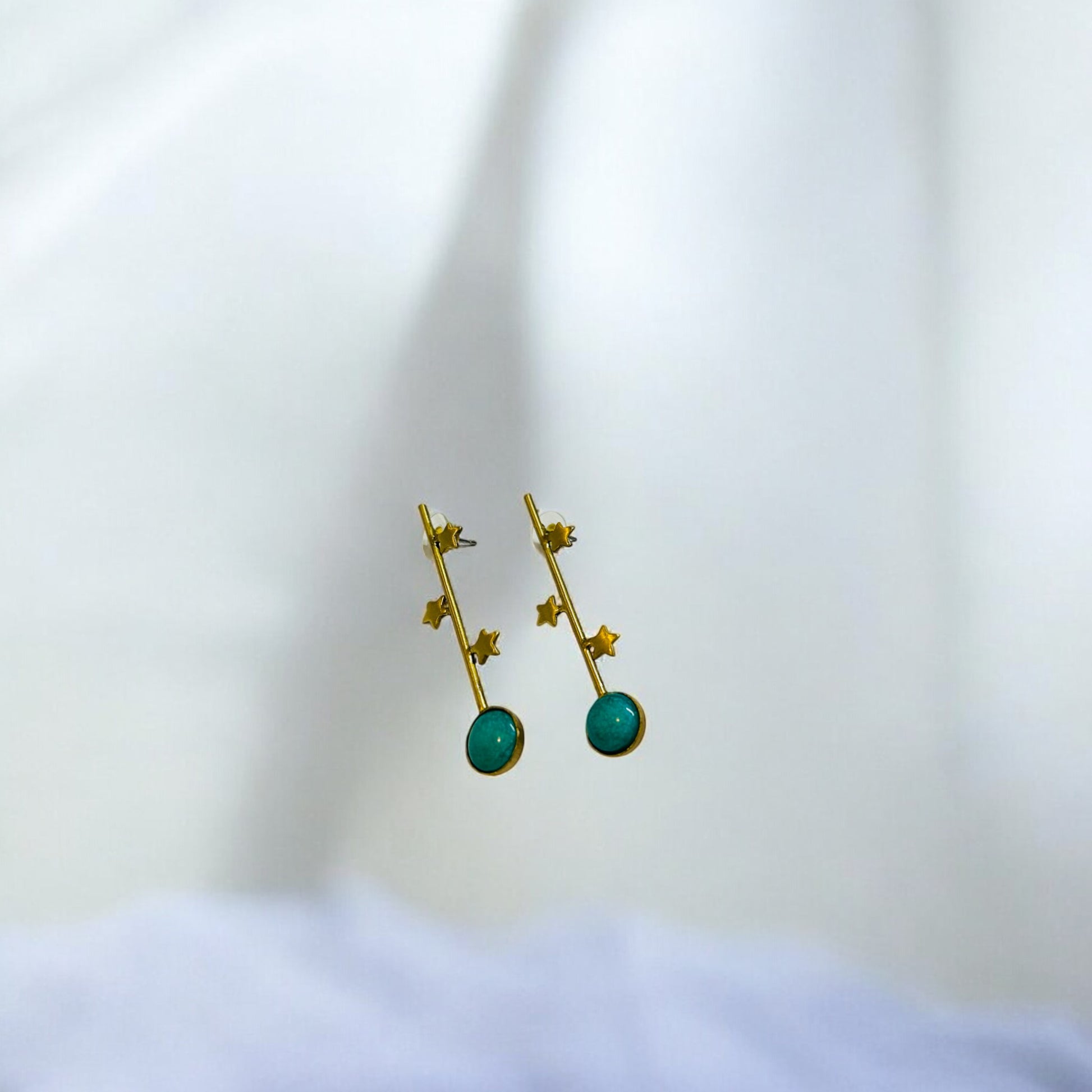 Add a celestial touch to your jewellery collection with our Modern Brass Star and Stone Dangle Earrings from White & Pastels. Featuring a sleek brass chain adorned with shimmering star accents and a stunning blue stone, these earrings effortlessly combine modern design with timeless elegance. Perfect for day or evening wear, they add just the right amount of sparkle to any outfit.