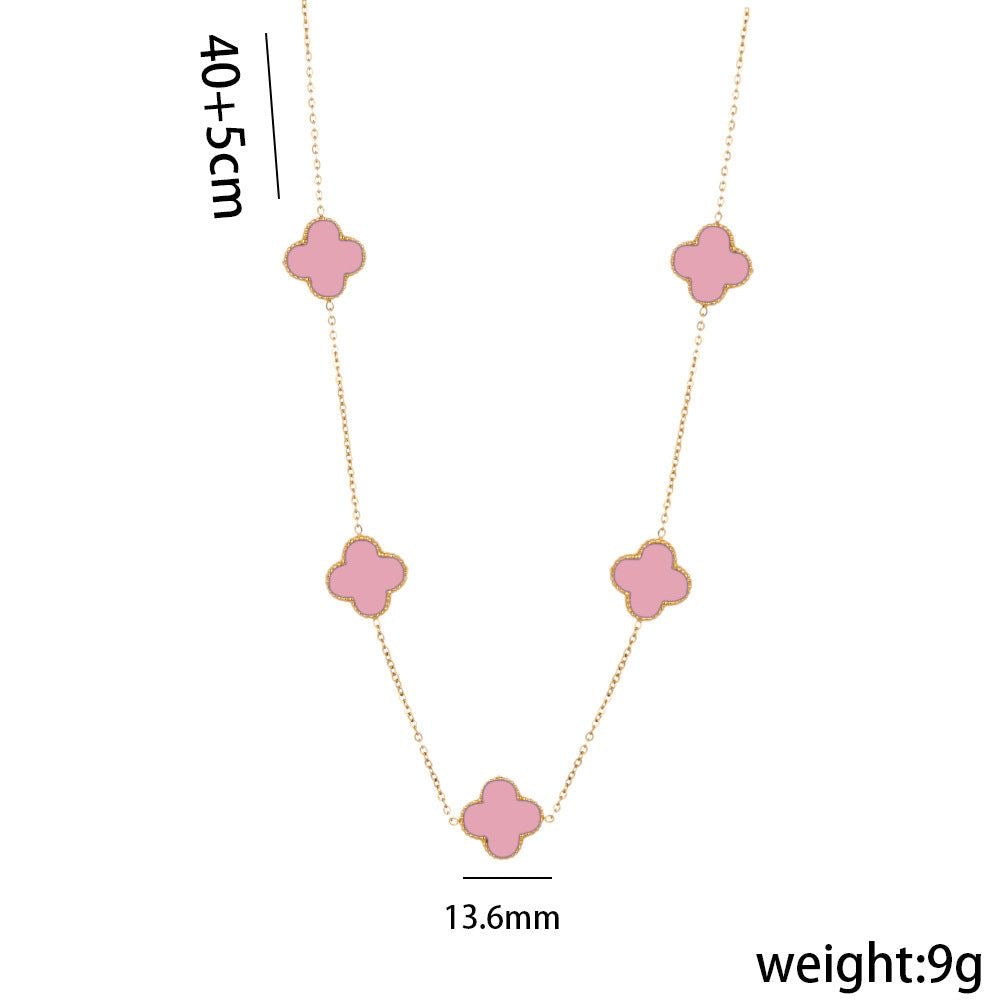 The Pink Clover Luxe Necklace is your new go-to for effortless elegance. Featuring five delicate pink enamel clover charms, this beauty is crafted with anti-tarnish stainless steel and finished in a rich gold tone. It’s dainty, durable, and dripping in charm.