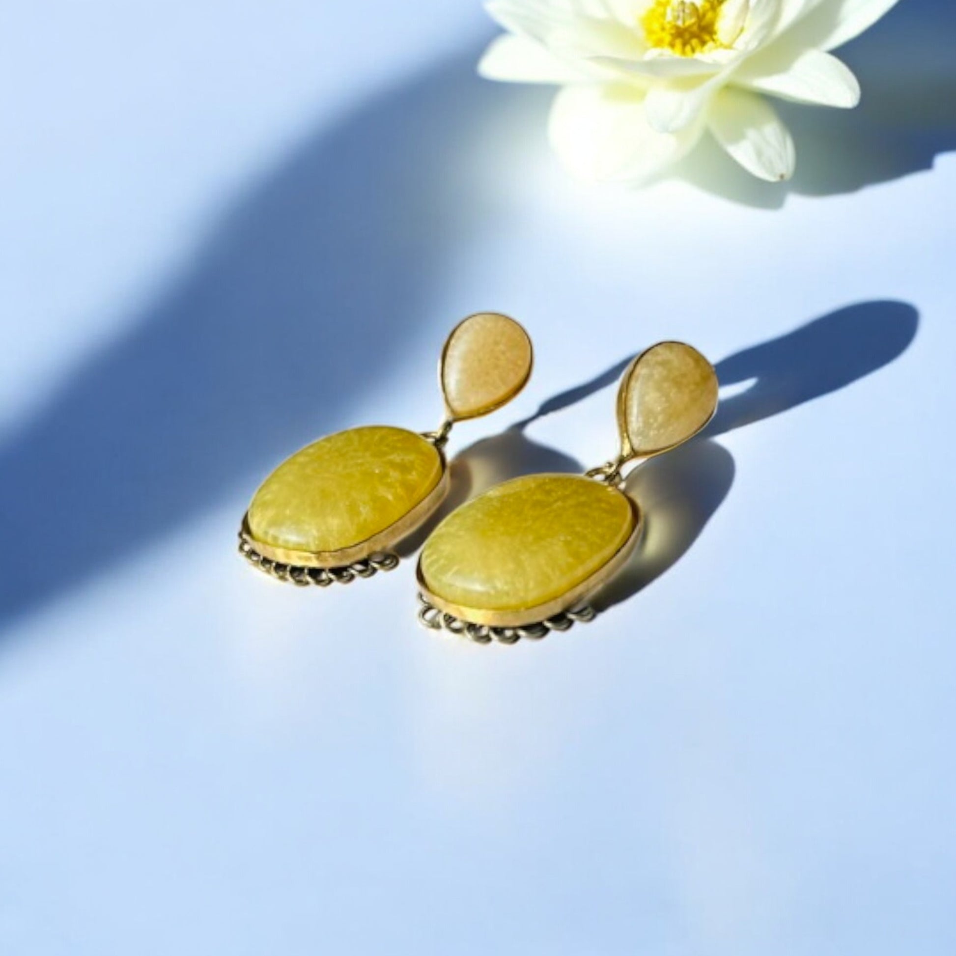 Crafted with real Golden Citrine stones in a warm Buttery Sorbet hue, the Sunlit Elegance Earrings are a radiant celebration of nature’s brilliance. The luminous yellow stones, set in luxurious gold colour, make these earrings an uplifting statement of grace and confidence.