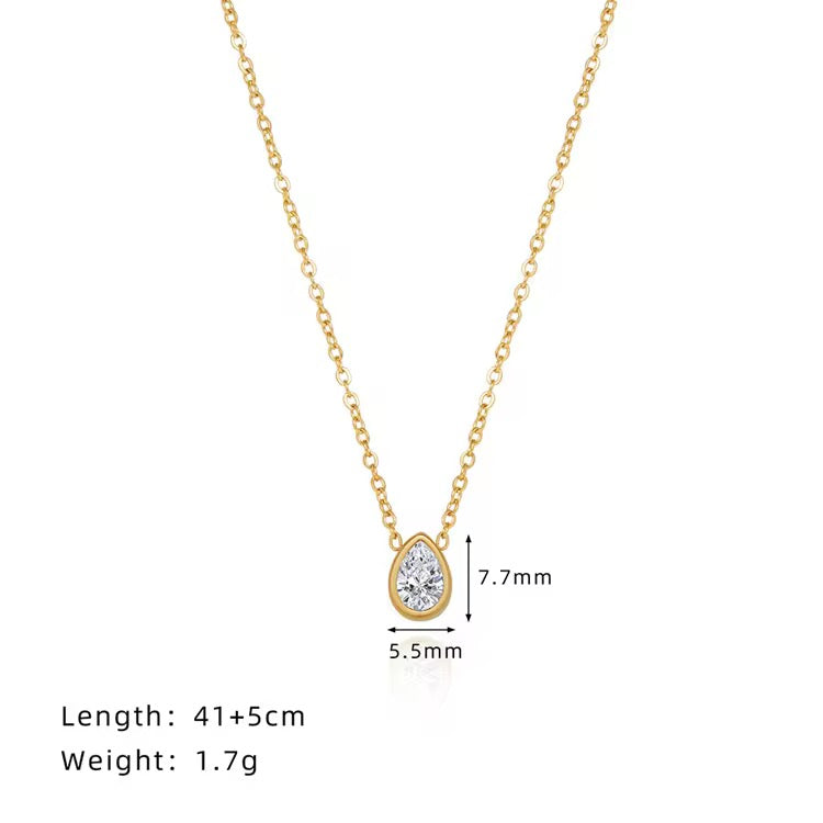The Design: This high-quality, meticulously crafted Tear Drop Solitaire Necklace features a delicate, radiant gold-toned chain suspending a single, brilliant pear-shaped (tear drop) clear stone. The stone is perfectly cut to catch the light, creating an exquisite sparkle. Crafted from 316L Stainless Steel and 18 kt Gold Plated, this necklace is engineered to be flawlessly Tarnish Free, completely Waterproof, and inherently Hypoallergenic. This ensures unparalleled comfort and a magnificent, lasting glow that becomes your signature.