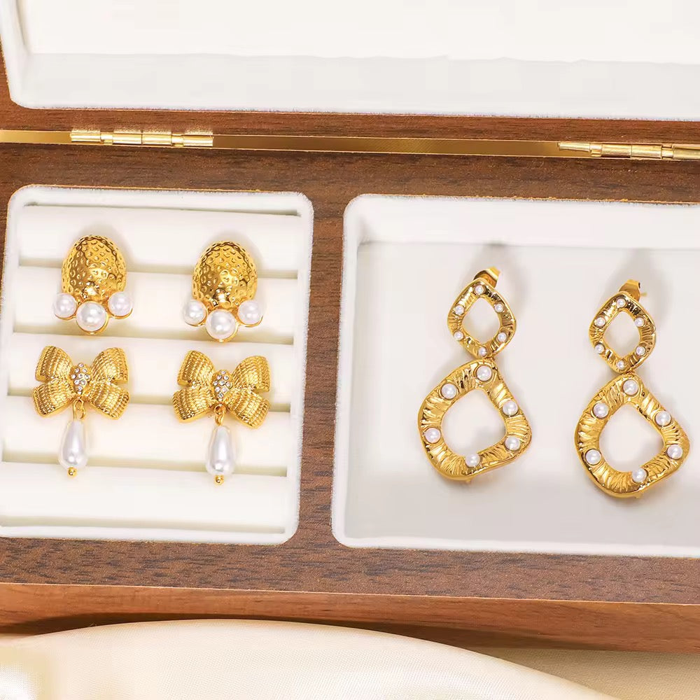 The Design: These high-quality, must-have "It-Girl" Irregular Pearl Drops are meticulously crafted for the contemporary trendsetter. Featuring an artfully organic, fluid shape in a radiant gold-toned finish, each earring is delicately adorned with lustrous, perfectly placed mini pearls. Made from premium stainless steel, these beauties are absolutely anti-tarnish, waterproof, and hypoallergenic, ensuring they're tarnish-free, skin-friendly, and always ready for your next photo-ready moment, without losing their drip or glow up.