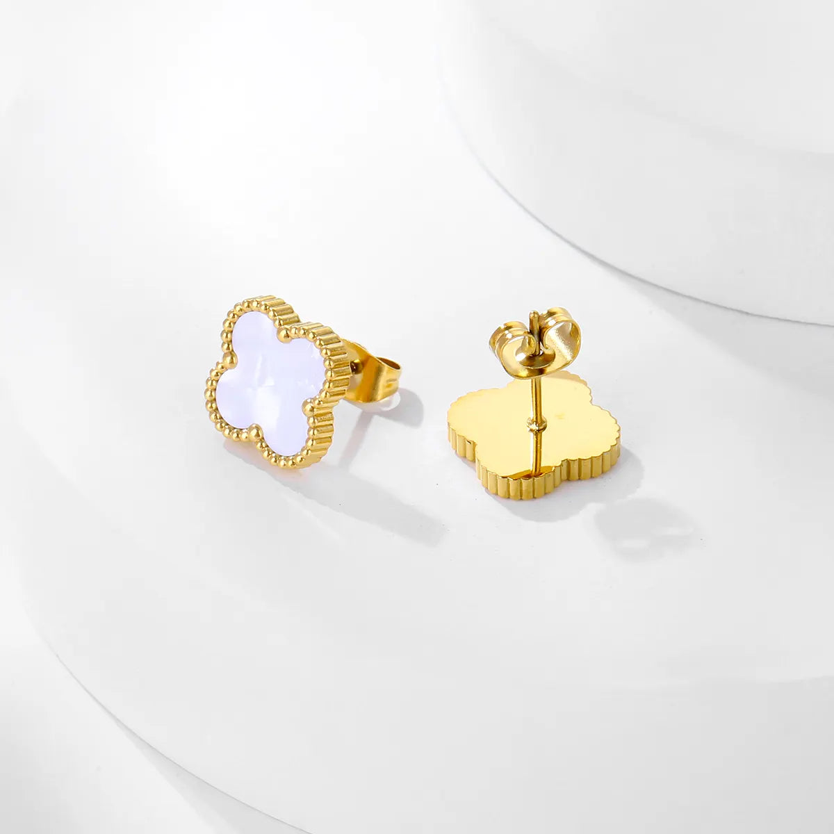 The Design: These White Clover Studs are meticulously crafted with love, just for YOU. Featuring a classic four-leaf clover motif in a clean white finish, these earrings are made from premium stainless steel. They are designed to be completely anti-tarnish, waterproof, and hypoallergenic, ensuring exceptional comfort and lasting brilliance without any irritation or discoloration.